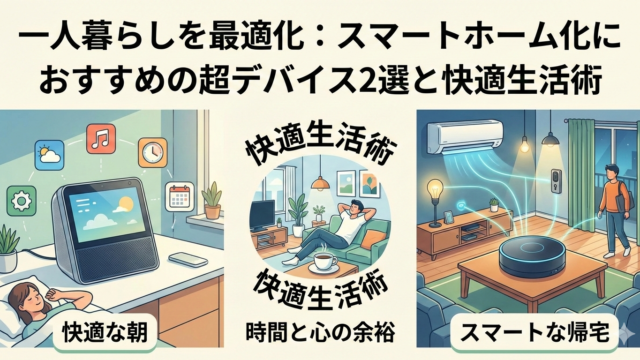 家電小物 💡 【一人暮らしを最適化】スマートホーム化におすすめの超デバイス2選と快適生活術 🚀 導入:一人暮らしの「ちょっと面倒」をなくす魔法—スマートホームの世界へようこそ仕事や学業で忙しく過ごす日々、「帰宅時に部屋が真っ暗で寒い(または暑い)」「布団に入ってから電気を消し忘れたことに気づく」「リモコンがどこかに行ってしまった」... 2025.11.14 家電小物暮らし
